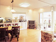 ![]() リビングから段差なしで続く和室はご両親の茶の間。さらに板間の寝室へと続きます。 |