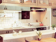 ![]() 機能的なシステムキッチン。ハロゲンクッキングヒーターを採用しています。 |