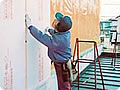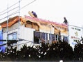 ![]() 工事中の外観。無落雪タイプの屋根に変更した。 |