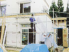 ![]() リフォーム中。外壁をはがし防湿シートを施工中。 |